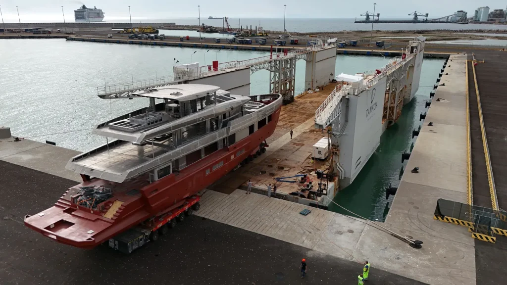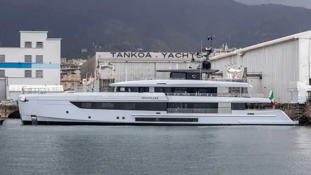 Prior to its arrival in Genoa, essential machinery installations and other production tasks were finalized in Civitavecchia. This transfer not only signifies the yacht’s advancement but also underscores Tankoa’s strategic production processes. Each step, from initial build to outfitting, is meticulously planned to ensure that the final product meets the high standards expected in this sector.