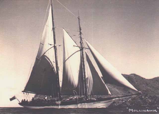 After the war, when we two lads came out of the services, the Commander had already started refitting Mollihawk with an idea of going back to the West Indies where he had once patrolled the islands during the war, just as Nelson once did. At the time, Dad was based in Bermuda and we had braved the Battle of the Atlantic to join him there. It was amongst those islands we learnt our first seamanship when going shopping across the Sound.